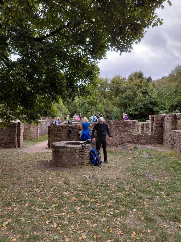 Staza kroz zapadni dio Mečeka bila je duga oko 11 km, bez većih uspona i pogodna za sve dobne skupine. Nakon sat i pol hoda stiglo se do ruševina pavlinskog manastira na vrhu Jakab-hegy (602 m), četvrtom po visini vrhu Mečeka. Ondje je domaćica ispričala povijest manastira, sagrađenog još 1225. godine, koji je tijekom povijesti bio napuštan i obnavljan, a danas su mu ruševine zaštićene. Posebno su zanimljive čarobne stijene crvenkasto-smeđe boje po kojima je ovo područje poznato.