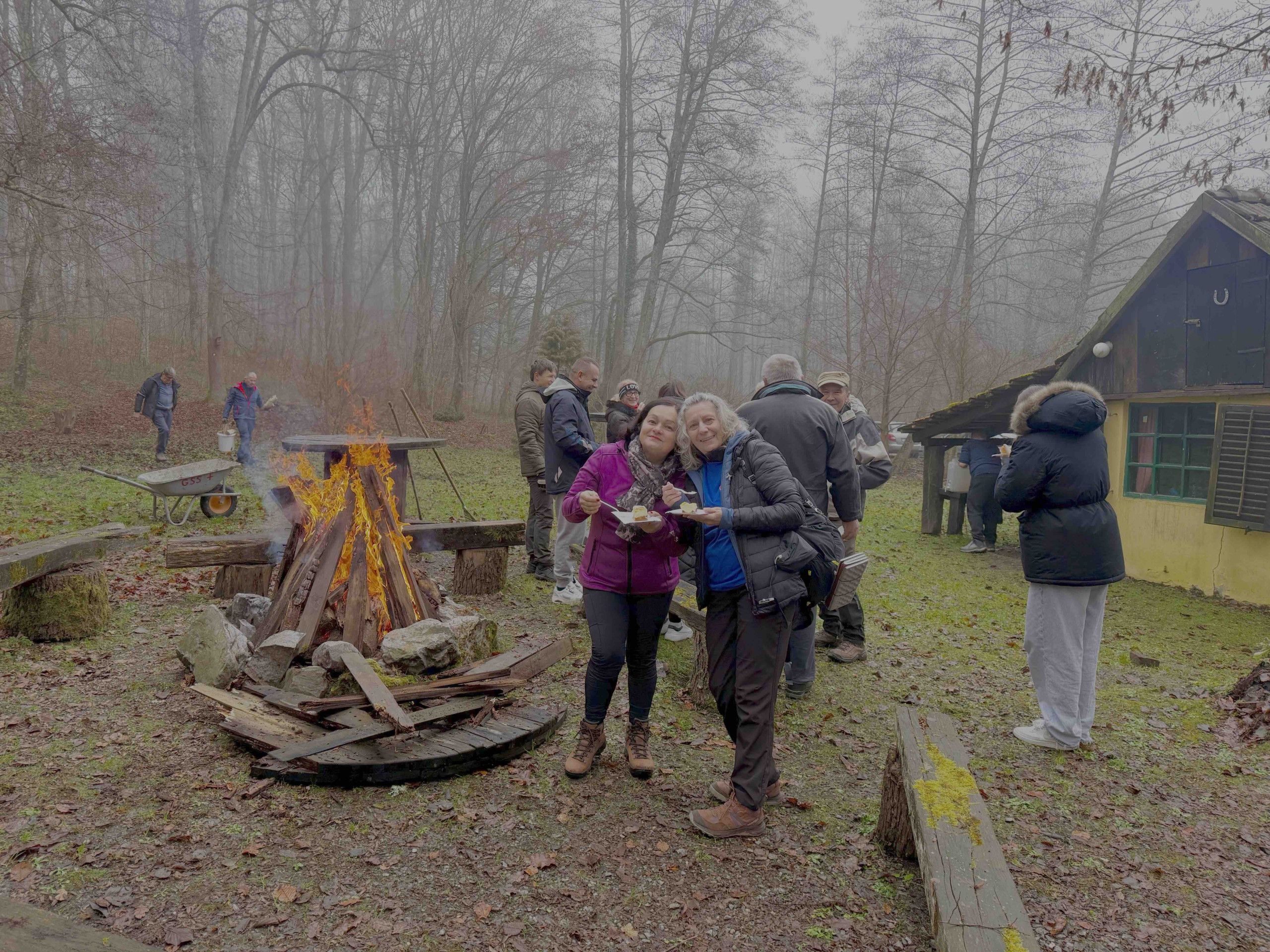 Snijeg smo čekali (i dozivali), ali se nije pojavio, no zato se pojavilo oko 40 planinara, dobre volje i još boljeg apetita. Subotu smo proveli kako i priliči pravim planinarima: uz smijeh, druženje, topao ručak, topli čaj… i poneki “dodatak” za zagrijavanje . Vatrica je veselo puckala, magla se šuljala oko kućice i davala cijelom događaju pomalo mističan, gotovo bajkovit ugođaj „fali samo koji vilenjak ili jednorog“. Da nitko ne ostane gladan (jer gladan planinar nije sretan planinar), Mario uz Ljiljanu i ostatak vrijedne ekipe prihvatio se odgovornog zadatka pripreme ručka. Uspješno, nitko nije morao na brzi silazak zbog praznog želuca.