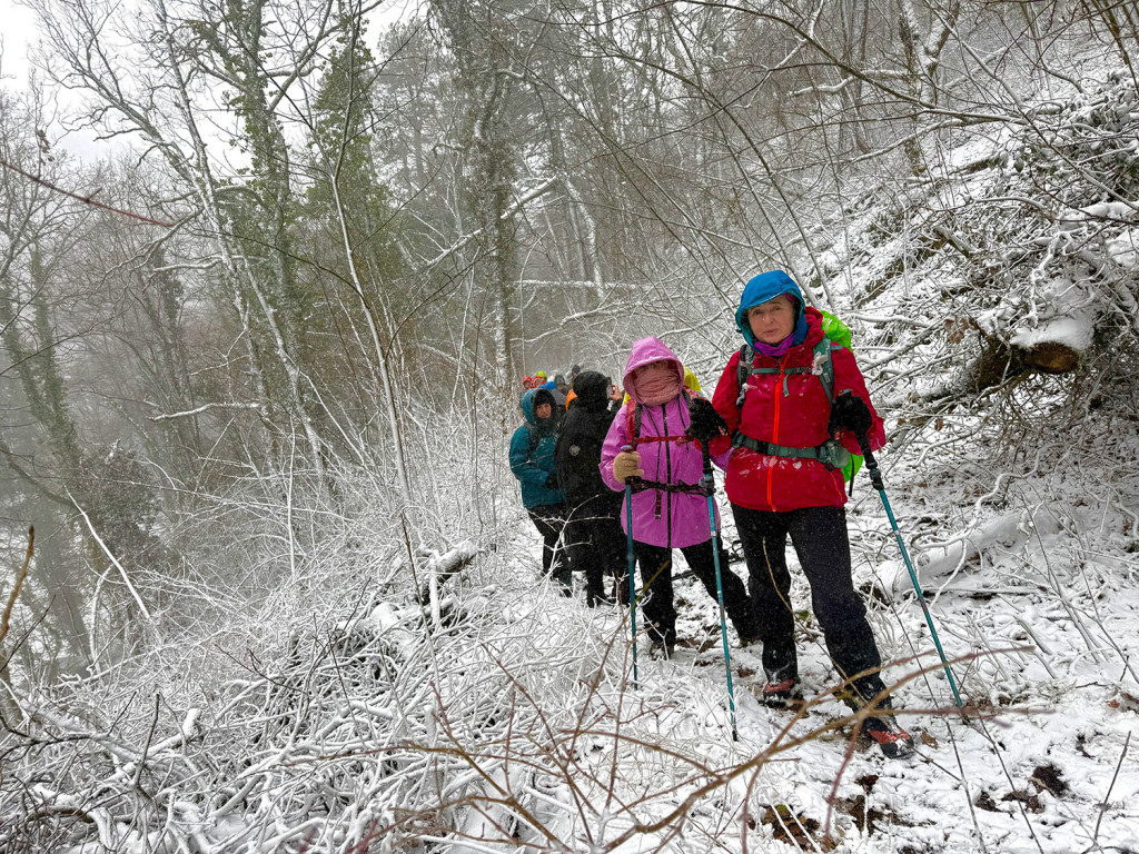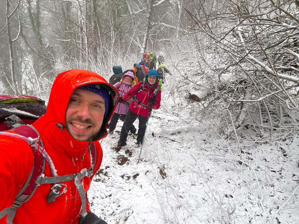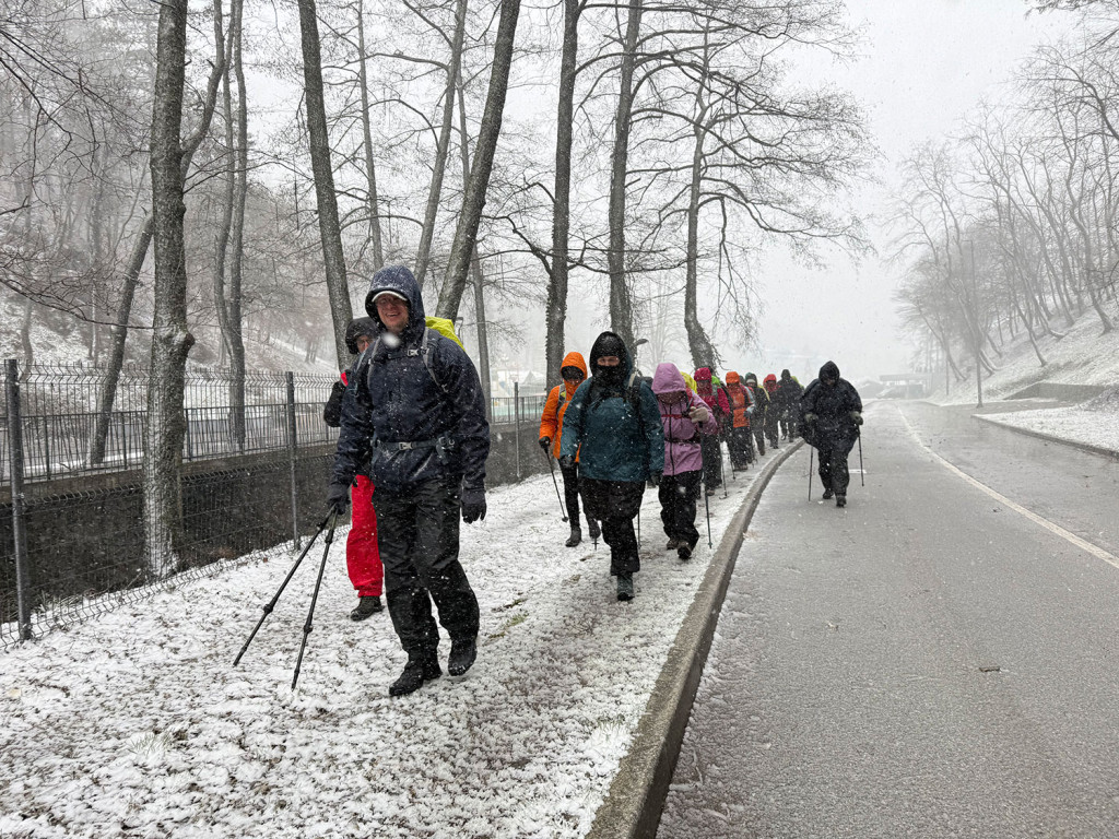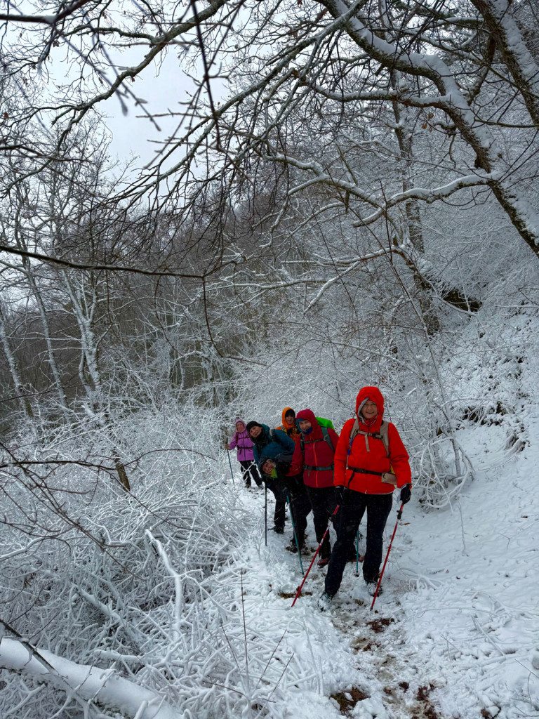 Zimski uvjeti? Sitnica! Malo snijega, malo klizanja, malo “umjetničkog klizanja bez klizaljki”. Ali smijeha i šale nije nedostajalo. Netko je testirao kvalitetu staze osobnim padom (bez brige, dostojanstvo je jedina žrtva), a “topli napitci” su se pokazali kao vrhunska motivacijska metoda za nastavak uspona.