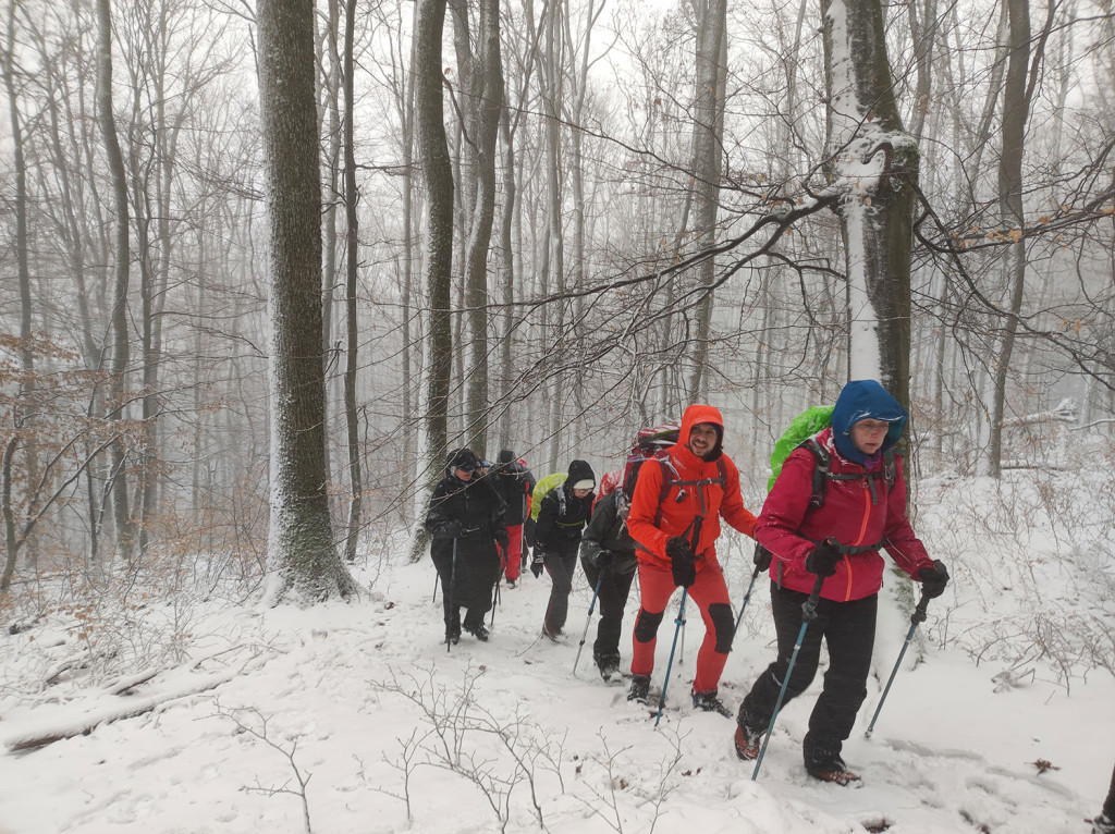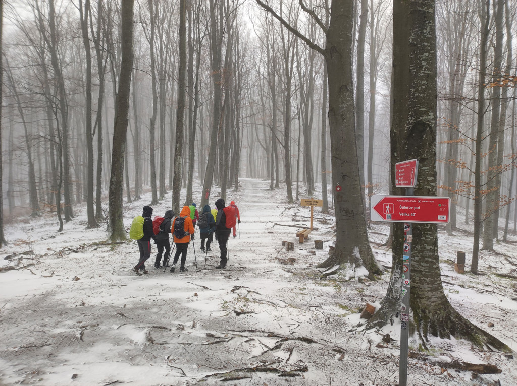 Polazak od podnožja planinarskog doma Lapjak. U startu svi puni energije, motivacije i slojevite odjeće (neki kao da idu na Arktik, a ne na Papuk). Već nakon prvog uspona krenulo je standardno: